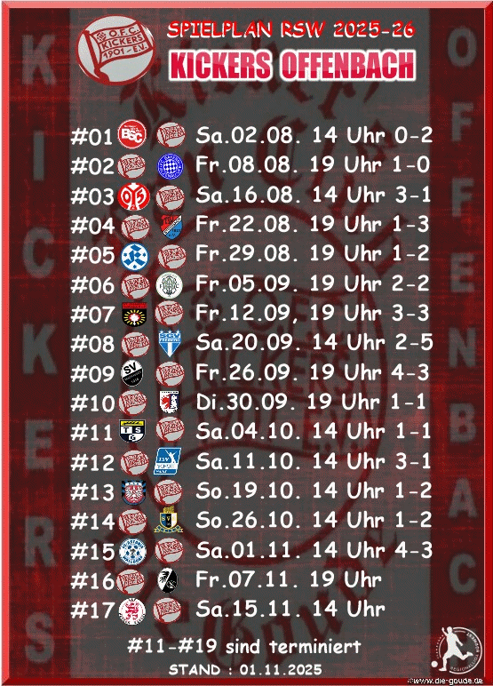 OFC SPIELPLAN VOM 1 NOVEMBER 2025, SPIELE 11 - 19 SIND TERMINIERT